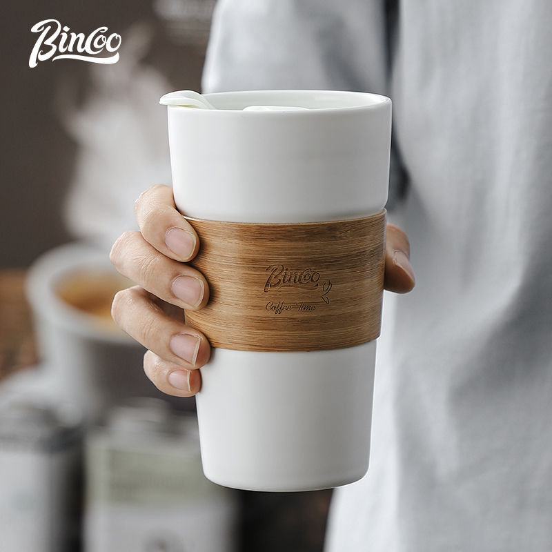 BINCOO Ceramic Coffee Mug Bamboo Sleeve Cup Direct Drinking Hand-brewed Coffee
